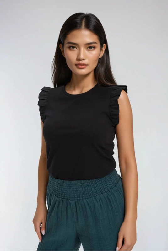 Marisse Black Blouse With Ruffles On The Shoulders