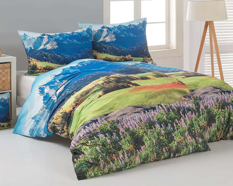 Matějovský Povlečení HORY, zelené, bavlna hladká digitál, 140x220cm + 70x90cm