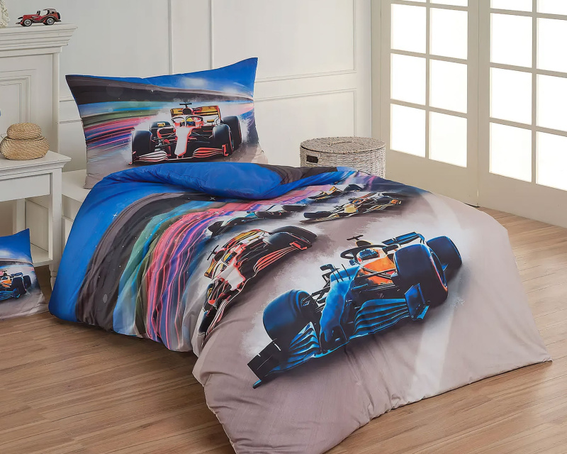 Matějovský Povlečení dětské FORMULE, modré, bavlna hladká, 140x220cm + 70x90cm