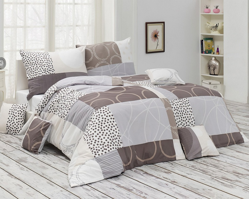 Matějovský povlečení LIOR, ornamentální vzor, béžovo-šedé, krep, 140x220cm + 70x90cm