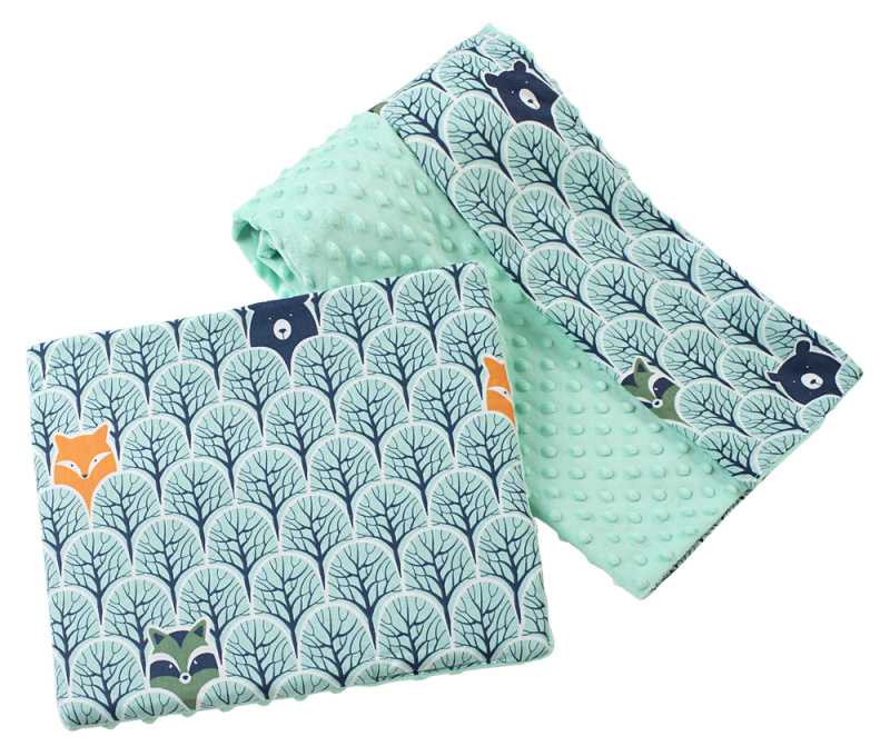 Medi Partners Quilt 75x100 + pillow 35x30 cotton + minky – Forest + minty minky
