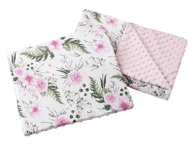 Medi Partners Quilt 55x75 + pillow 35x30 cotton + minky – Flowers + light pink minky