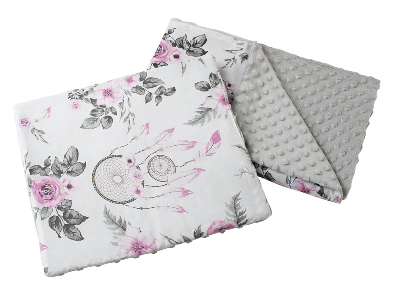 Medi Partners Quilt 55x75 + pillow 35x30 cotton + minky – Dreamcatchers + gray minky