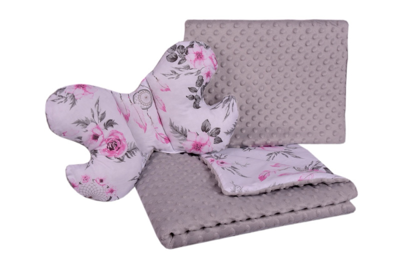 Medi Partners Quilt set with a stroller pillow + butterfly - Dreamcatchers + gray minky