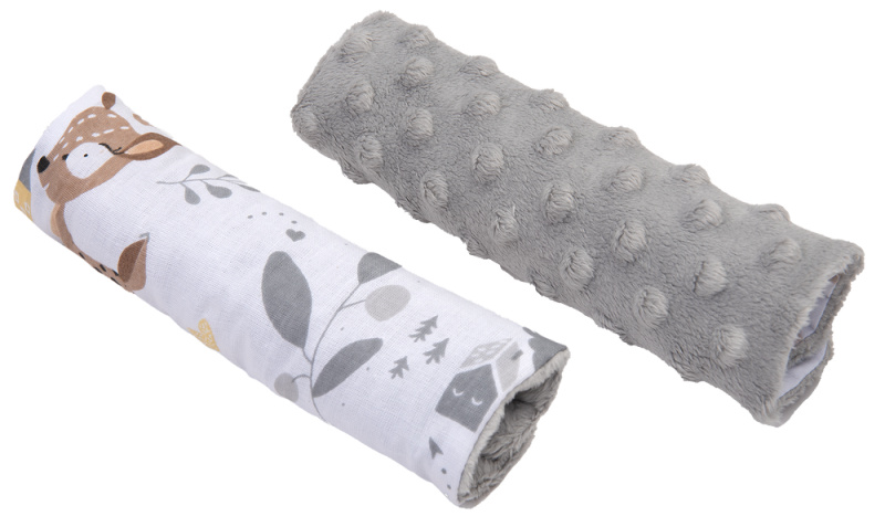 Medi Partners Stroller belt protectors (2 pcs.) cotton + minky – Jelonki + gray Minky