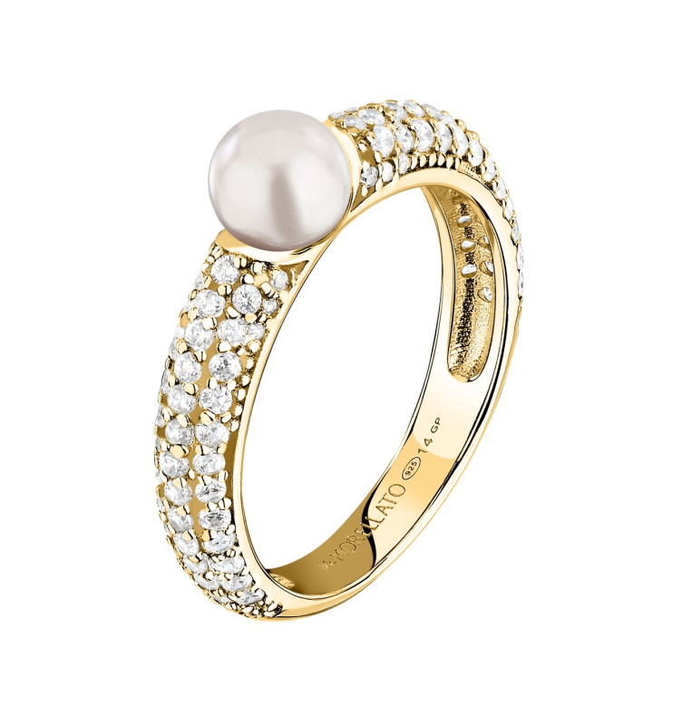 Morellato Pozlacený prsten s pravou perlou a zirkony Perla SXU510 56 mm