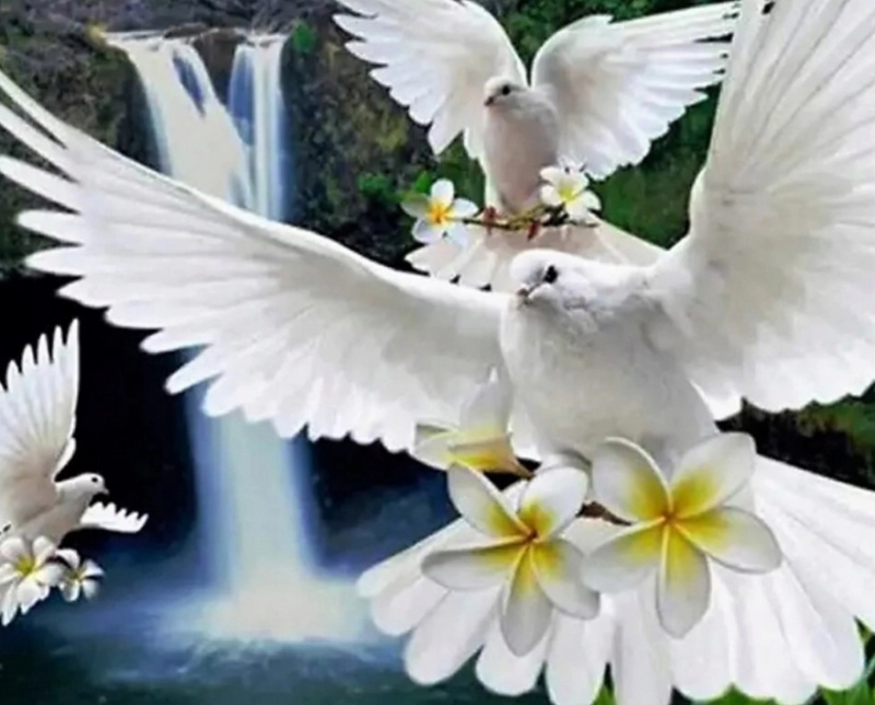 Diamantové malování Bílé holubice 30 × 40 cm