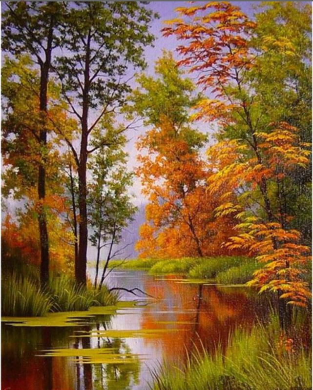 Diamantové malování Podzim na řece 30 × 40 cm