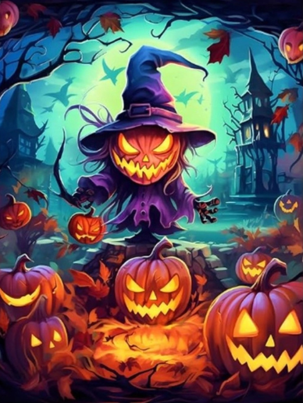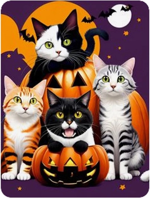 Diamantové malování Halloween – kočky a dýně 30 × 40 cm