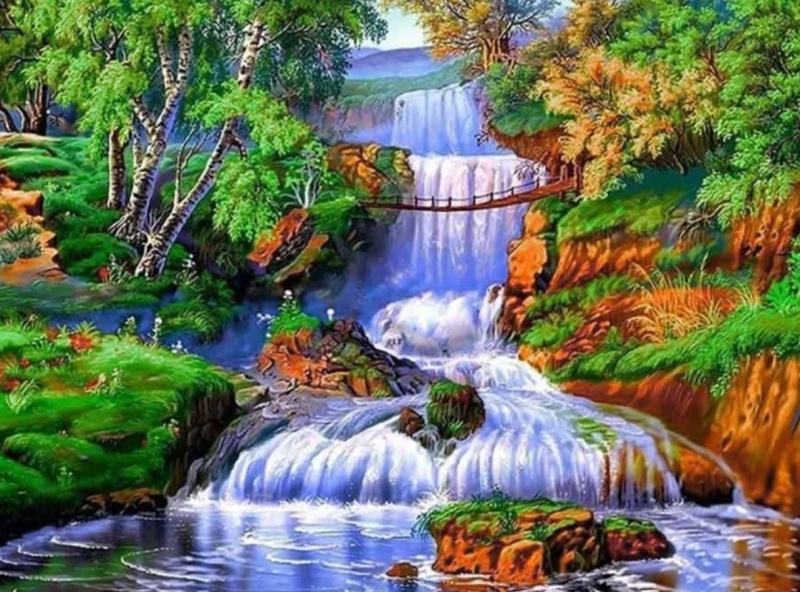 Diamantové malování Vodopád v lese 30 × 40 cm