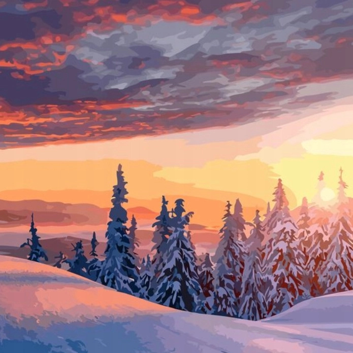 Diamantové malování – pohled na zasněženou zimní krajinu 30 × 40 cm