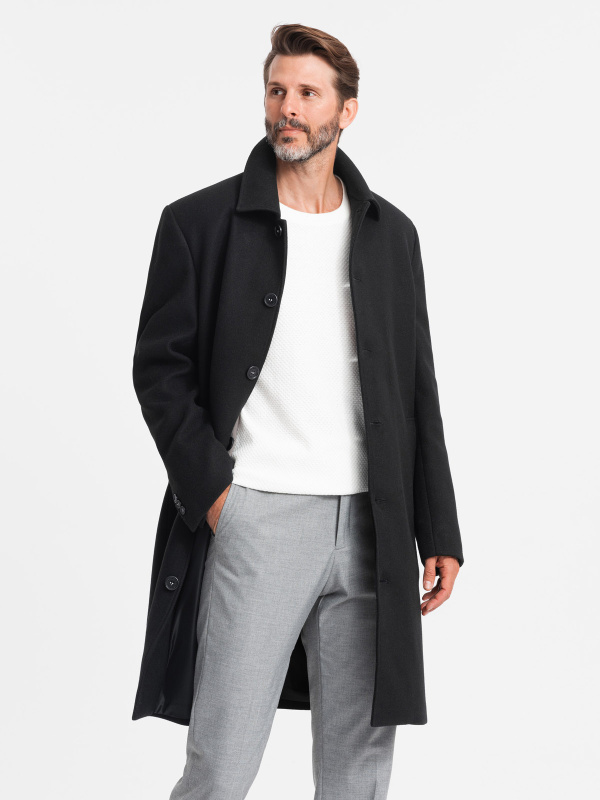 Ombre Men's long single-breasted coat with collar and undercoat - black