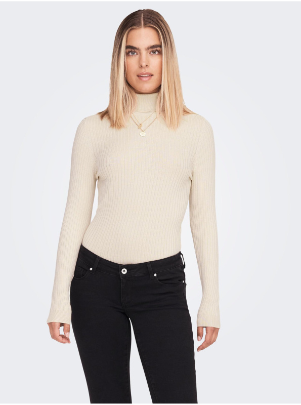 Béžový dámský žebrovaný rolák ONLY Karol - Dámské
