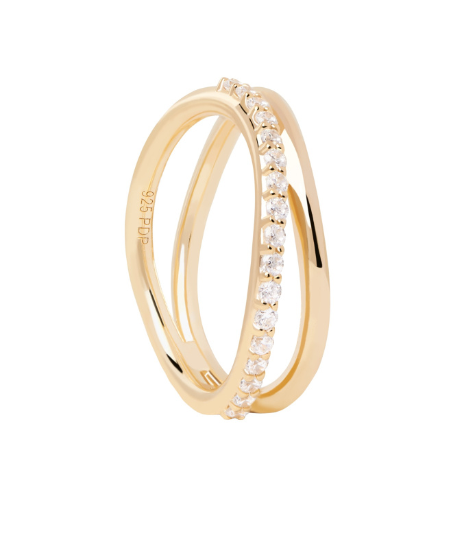 PDPAOLA Půvabný pozlacený prsten se zirkony Twister Essentials AN01-844 54 mm