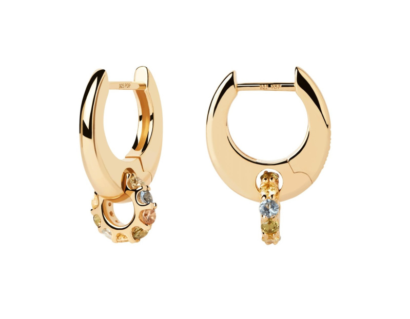 PDPAOLA Slušivé pozlacené náušnice s přívěsky RAINBOW Gold AR01-B89-U
