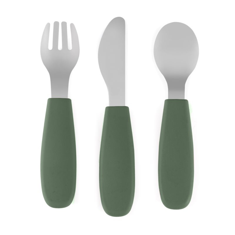 Petite&Mars Set jídelní silikonový Take&Match 2ks talíř + příbor 6m+ - Deset Sand