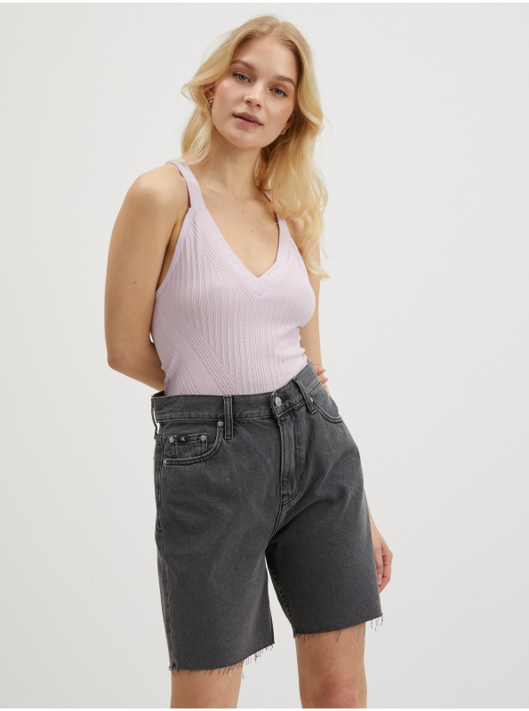 Světle fialový dámský žebrovaný top Pieces Lemon - Dámské