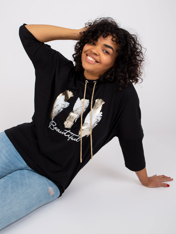 Černá volná halenka plus size z bavlny Ronnie