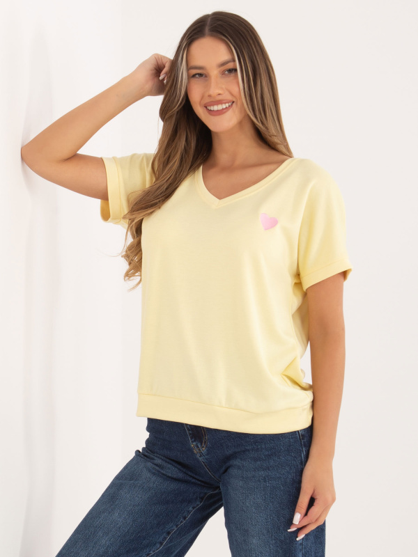 Světle žlutá halenka s kulatým výstřihem