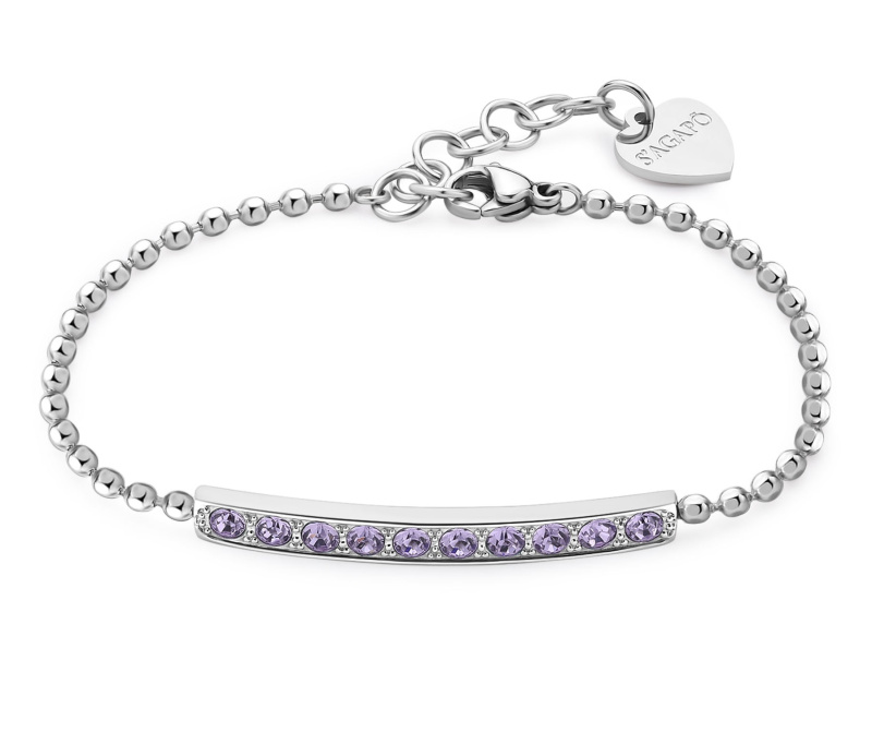 S'Agapõ Třpytivý ocelový náramek s fialovými krystaly Dazzly SDZ13