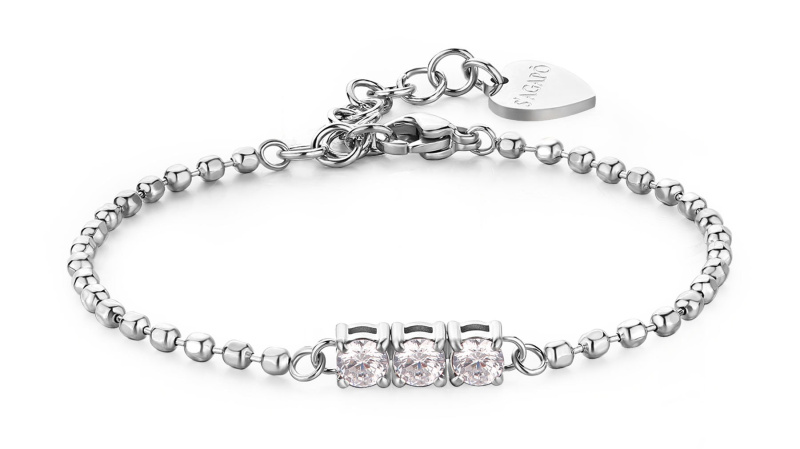 S'Agapõ Ocelový kuličkový náramek s čirými zirkony Dazzly SDZ23