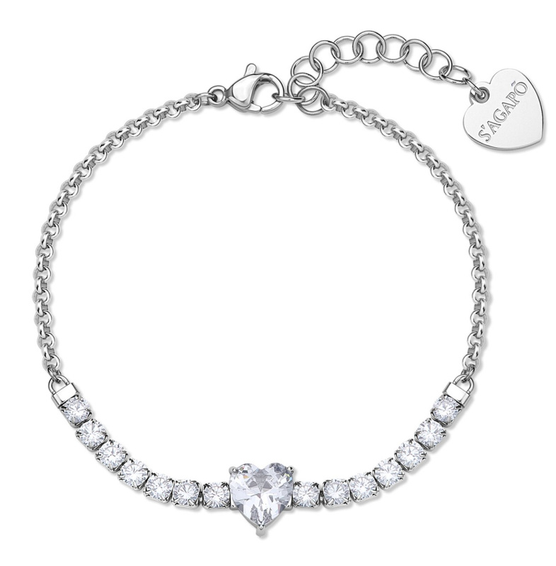 S'Agapõ Elegantní ocelový náramek s jiskřivým srdcem Dazzly SDZ151