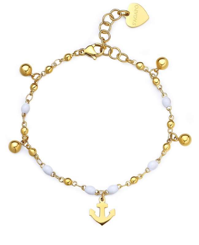 S'Agapõ Pozlacený náramek s bílým smaltem Kotva Vibes SVB60