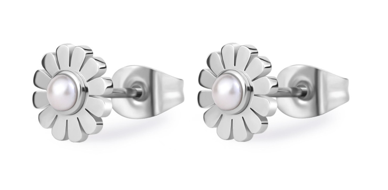 S'Agapõ Ocelové náušnice Kytičky s perlami Message SSG34