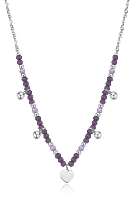 S'Agapõ Ocelový korálkový náhrdelník s přívěsky Srdce Glint SGI01