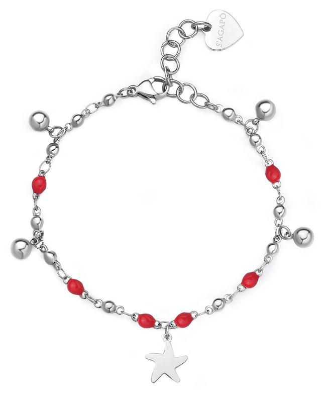 S'Agapõ Ocelový náramek s červeným smaltem Hvězdice Vibes SVB59
