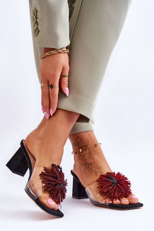 Módní transparentní pantofle na vysokém podpatku S.Barski KV-AP658-1 Černá 39