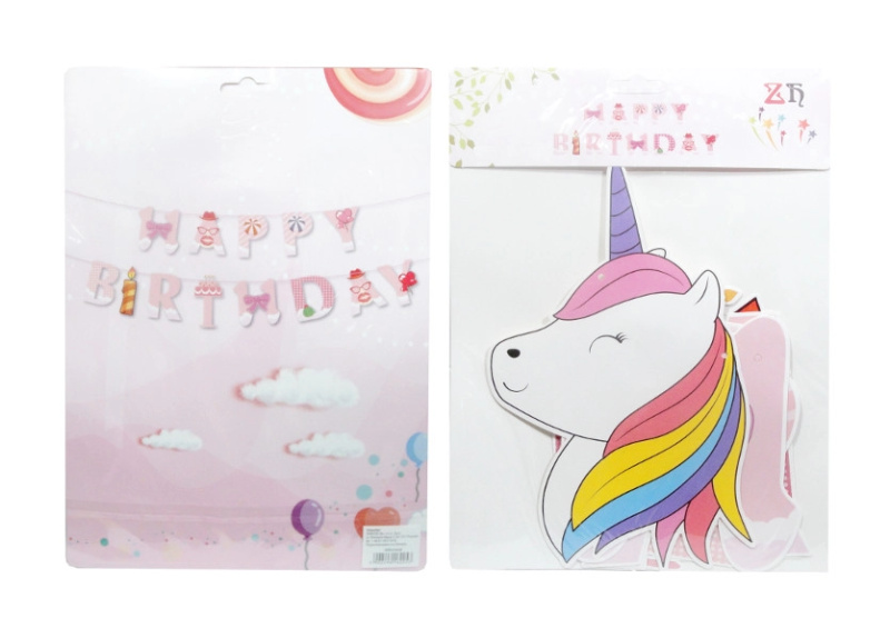 Papírová narozeninová girlanda Happy Birthday s jednorožcem