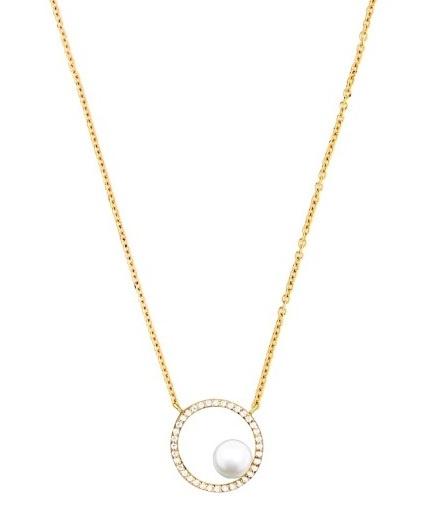 Silver Cat Slušivý pozlacený náhrdelník s kubickými zirkony a perlou SC501