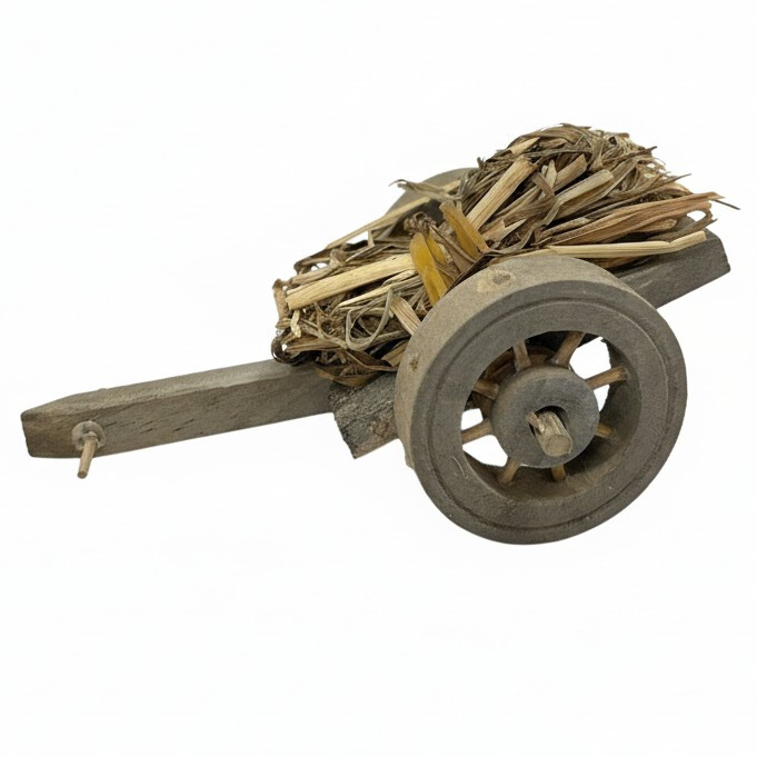 Dekoprojekt Dřevěná miniatura vozík se slámou 6 × 4 × 11 cm