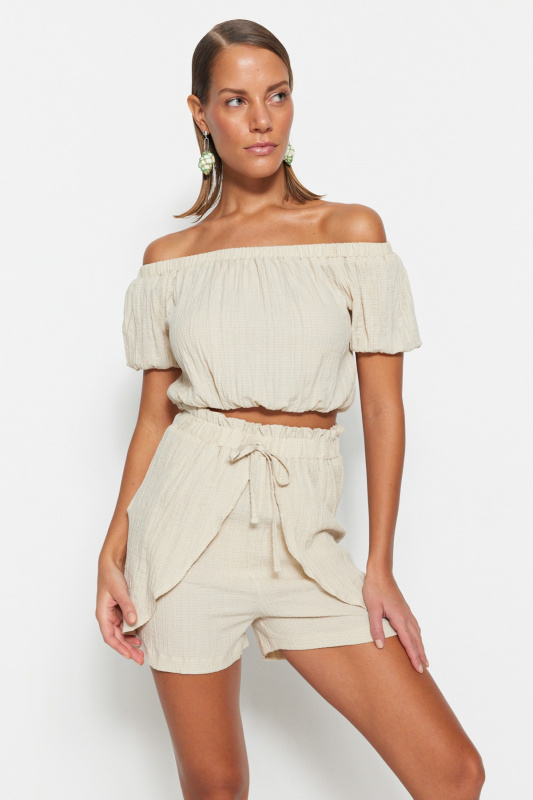 Trendyol Ecru Woven Blouse Short Set