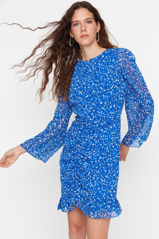 Trendyol Limitovaná edice Modré Mini tkané Tkané Šaty Ze Získaného Šifonu
