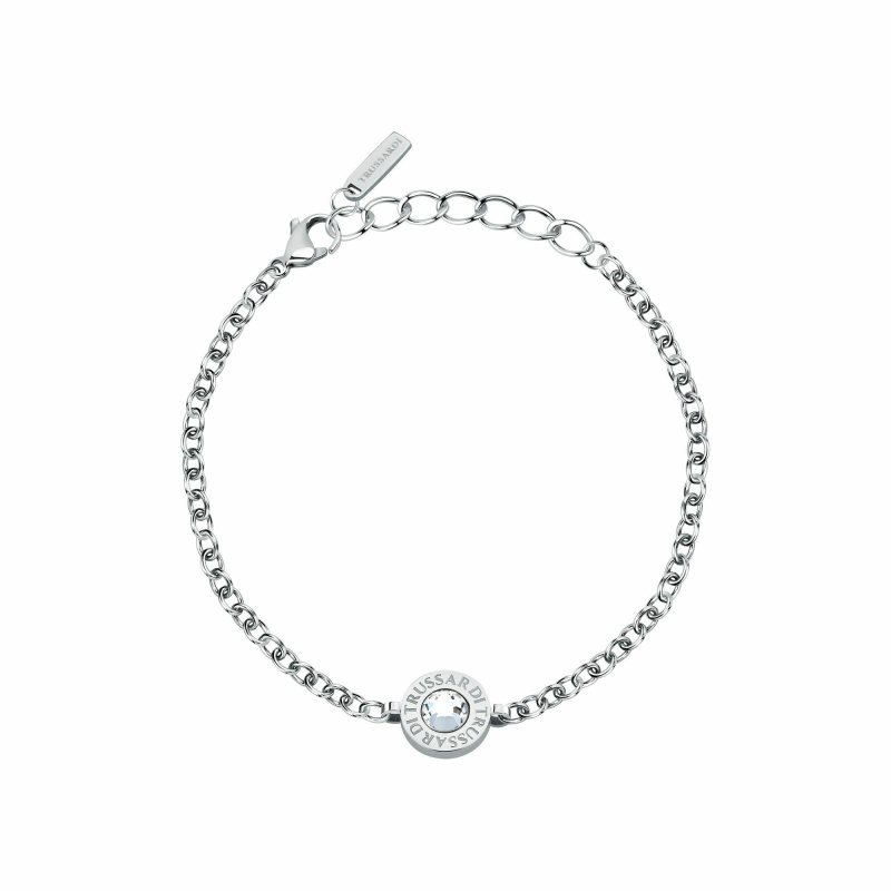 Trussardi Dámský ocelový náramek se zirkony T-Logo TJAXC68