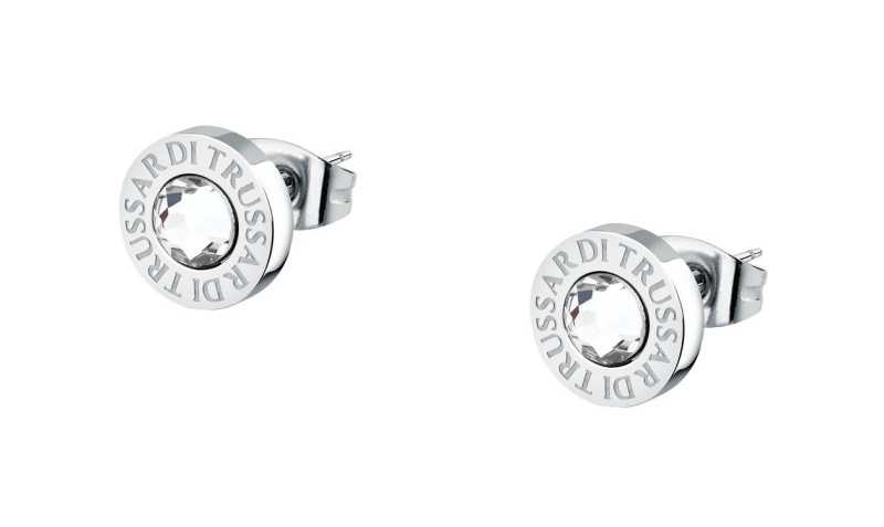 Trussardi Minimalistické náušnice s krystaly T-Logo TJAXC119