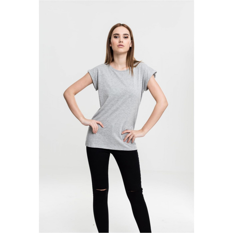 Dámské tričko s prodlouženým ramenem šedé