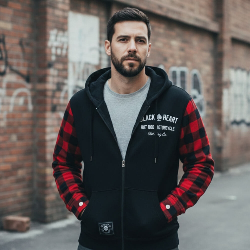 Moto mikina W-TEC Black Heart Ramforge červeno-černá L