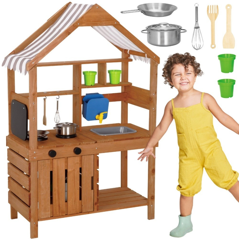 WOOPIE dřevěná venkovní blátivá kuchyňka s dáškem, dřezem a kohoutkem