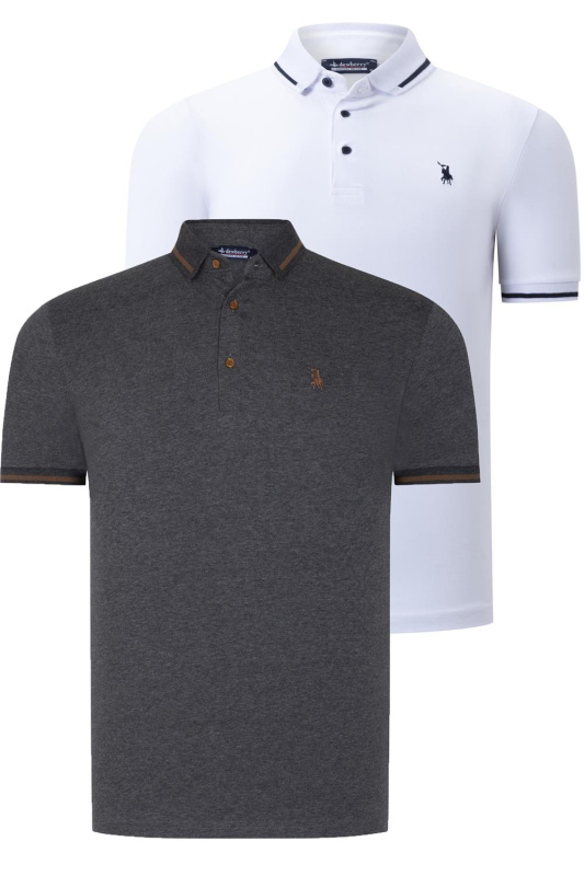 DOUBLE SET T8586 DEWBERRY MEN'S T-SHIRT-WHITE-ANTHRACITE