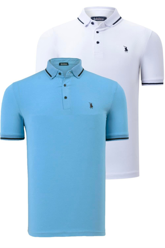 DOUBLE SET T8586 DEWBERRY MEN'S T-SHIRT-WHITE-LIGHT BLUE