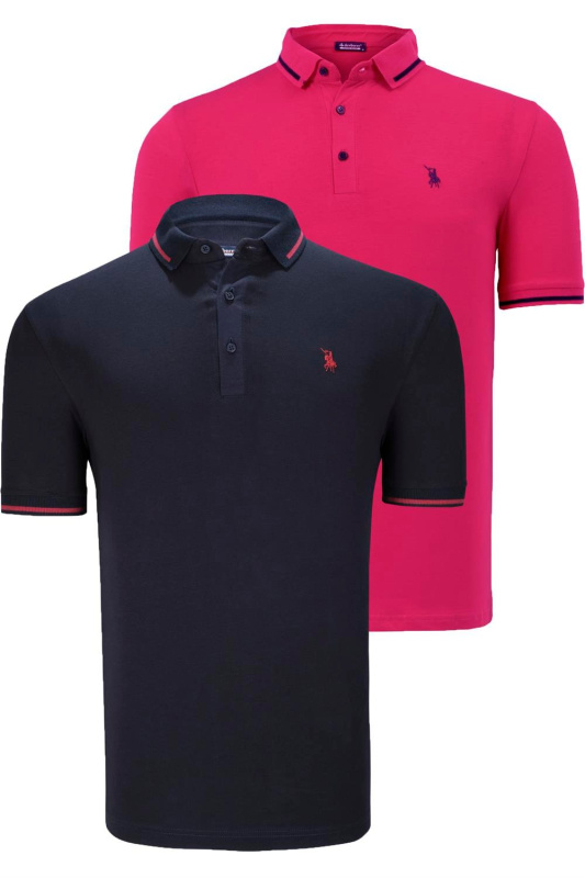 DOUBLE SET T8586 DEWBERRY MEN'S T-SHIRT-FUCHSIA-NAVY BLUE