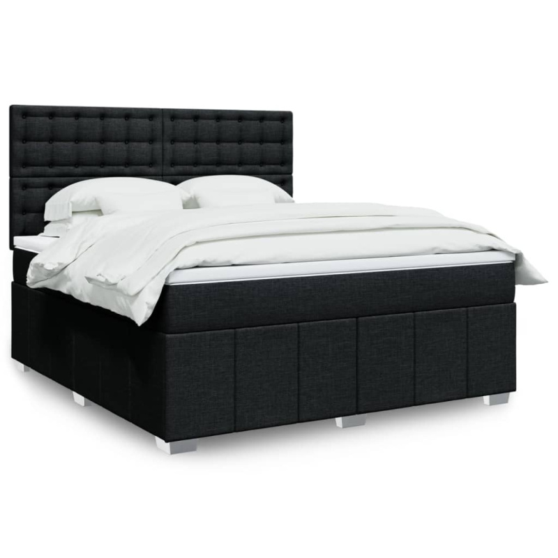 Box Spring Postel S Matrací Textil - Černá / 90 x 190 cm