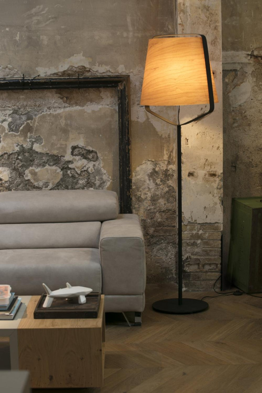 STOOD černá a dřevěná stojací lampa - FARO