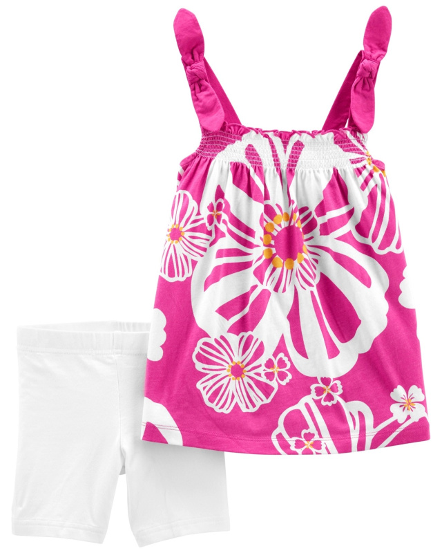 Dívčí set body a šaty s kšandami s modrými květy