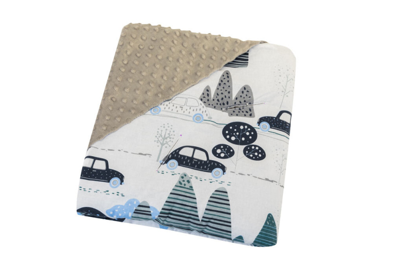 Bomimi Zavinovací deka do autosedačky minky autíčka, modrá