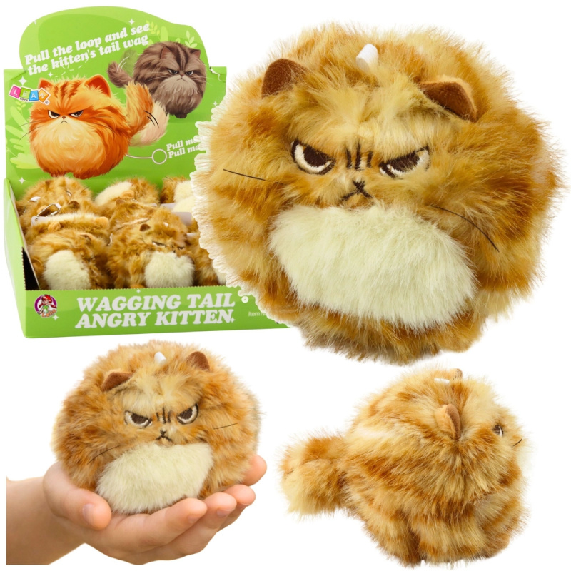 Plyšový rezavý kocourek s točícím ocáskem a pískátkem – přívěsek 9 cm