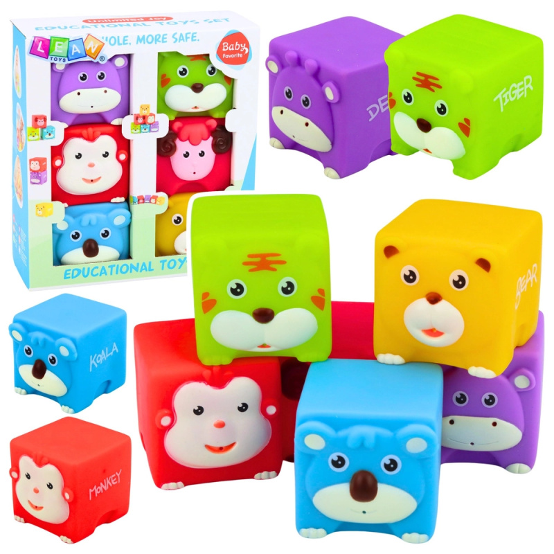 Měkké gumové senzorické kostky – zvířátka, 6 ks